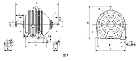 1、單級減速器型式、尺寸見圖1