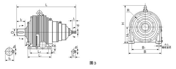 3、三級減速器型式、尺寸見圖3