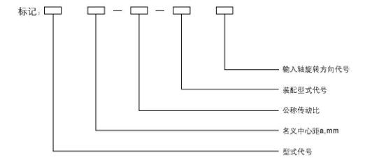 減速器的型號(hào)由型式代號(hào),名義中心距a(末級(jí)中心距)公稱傳動(dòng)比裝配型式代號(hào)輸入軸旋轉(zhuǎn)方向代號(hào)組成。
