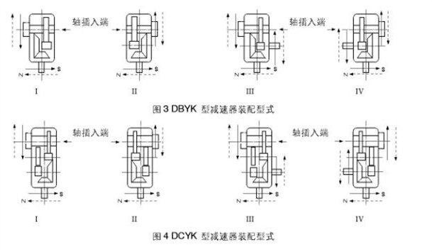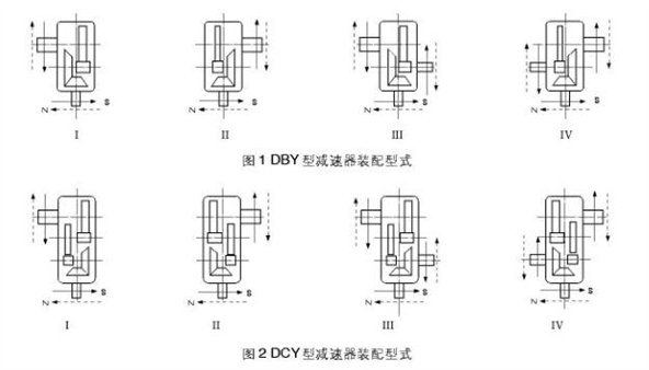 按輸出軸可分I、Ⅱ、Ⅲ、Ⅳ四種裝配型式。I||型為不帶逆止器型,Ⅲ、Ⅳ型為可裝制動(dòng)f逆止】器型。結(jié)構(gòu)簡(jiǎn)圖見圖1、圖2、圖3、圖4。