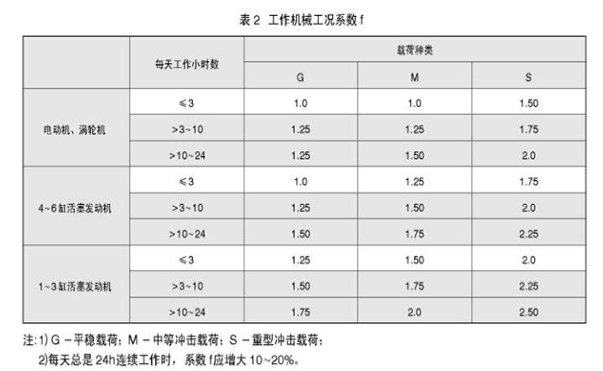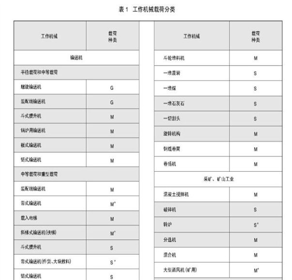被驅(qū)動(dòng)的工作機(jī)械載荷可分.平穩(wěn)載荷(G),中等沖擊載荷(M),重型沖擊載荷(S)及每天總是24h連續(xù)工作的工作