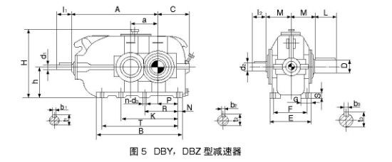 51DBY、DBZ型減速器外形尺寸、見圖5,表5。